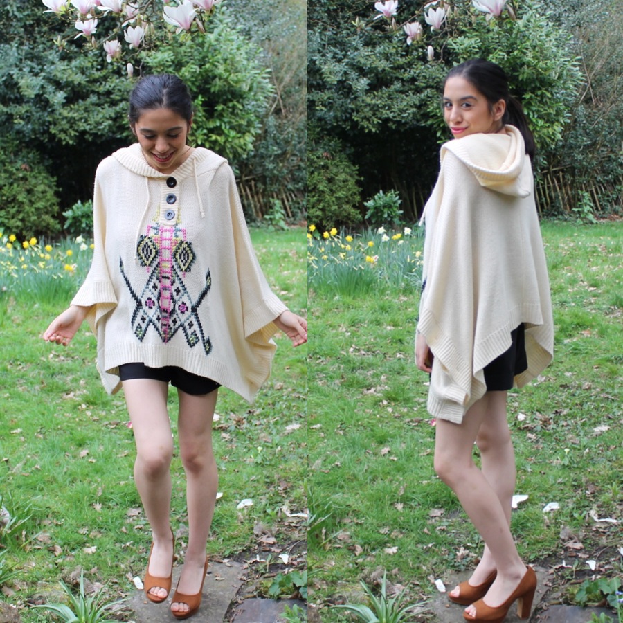 Aztec Printed Poncho from Forever 21 (2011), High waisted Shorts from Miss Selfridge (2012), Tan Suede Heels from Dorothy Perkins (2012)