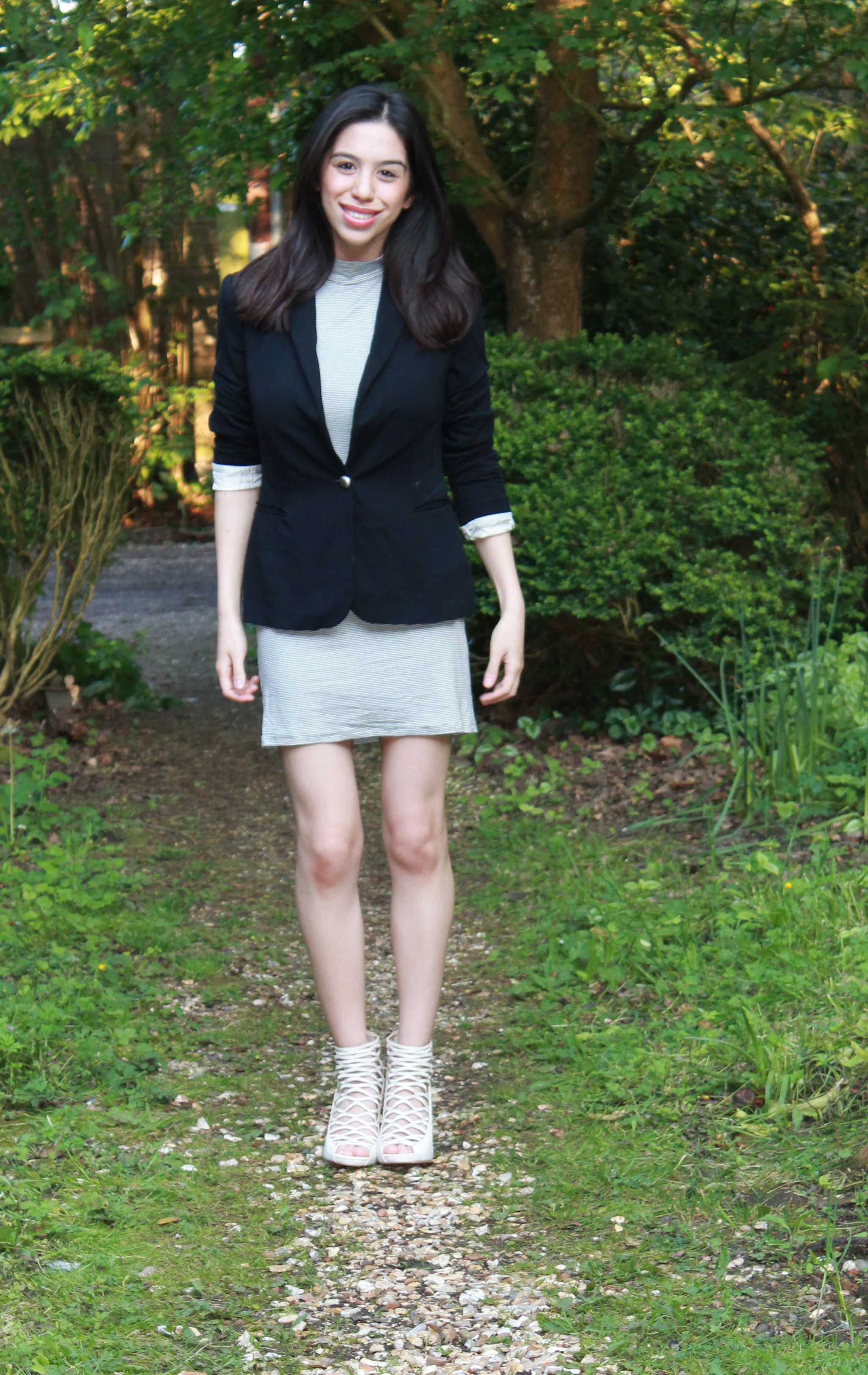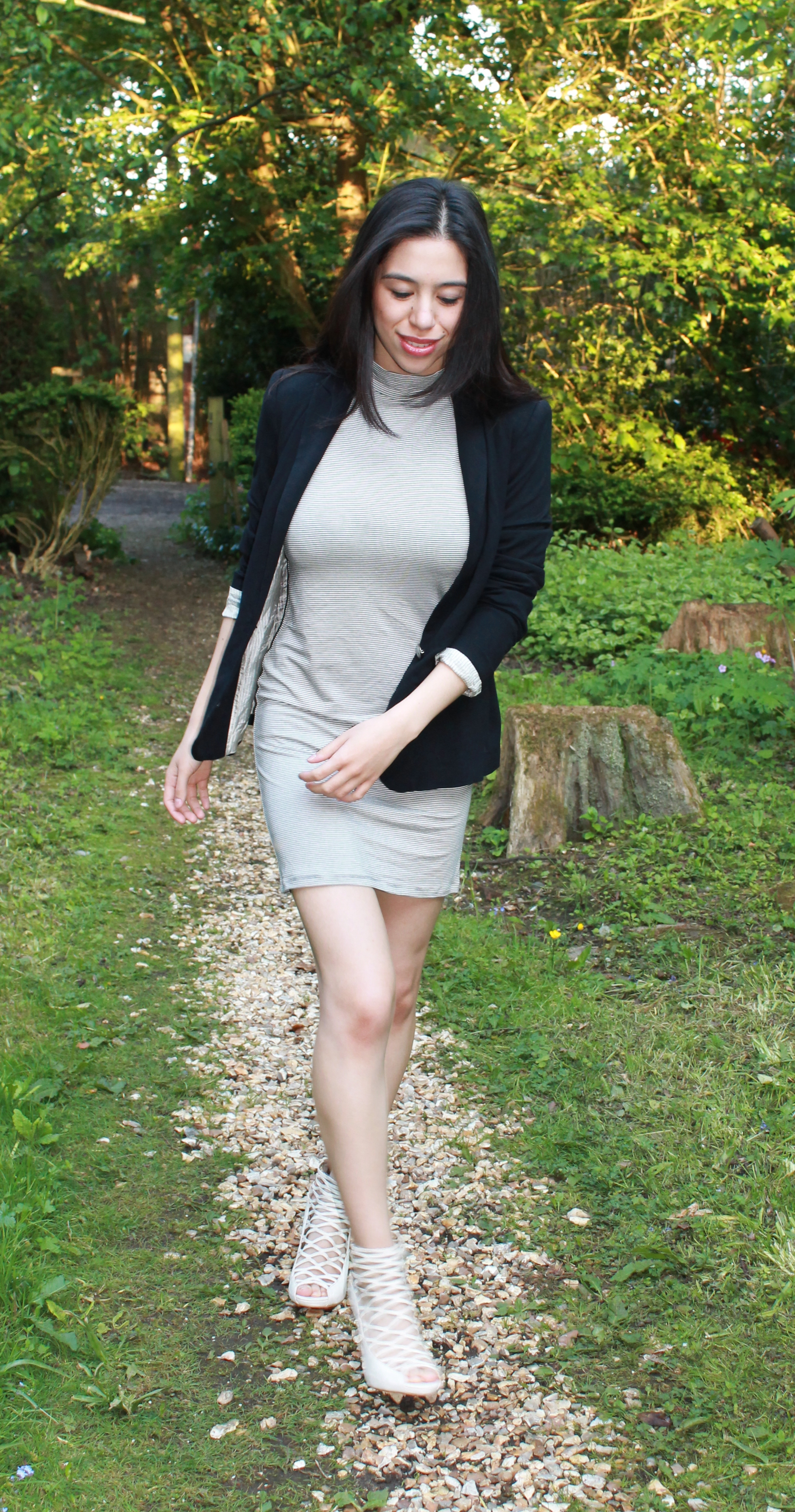 Dress from Miss Selfridge (2013), Shiny Silk Zipped Jacket from Zara (2012), Black Office Jacket from Zara (2012), Heels from Primark (2010).