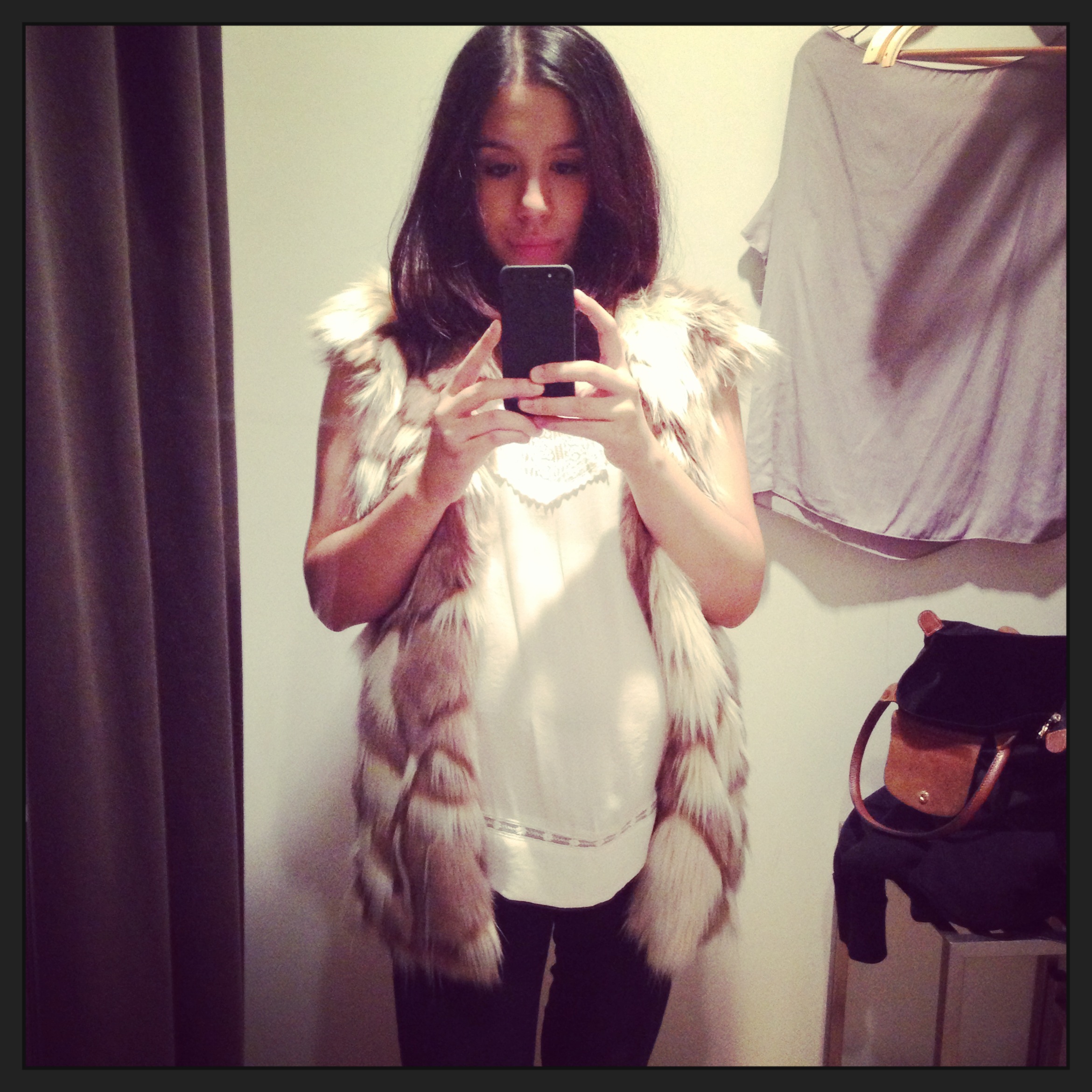 This is me when pregnant, this faux fur gilet was around £80, way beyond what I could afford and I’m glad I didn’t buy it, as I know I would have rarely worn it. Fun trying on though…