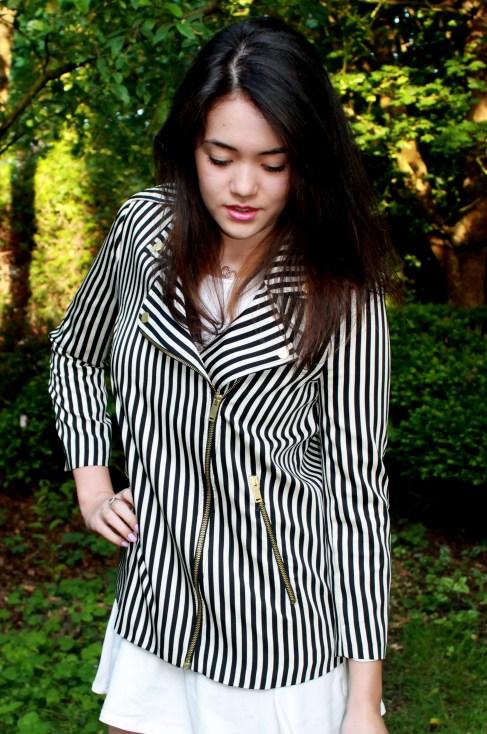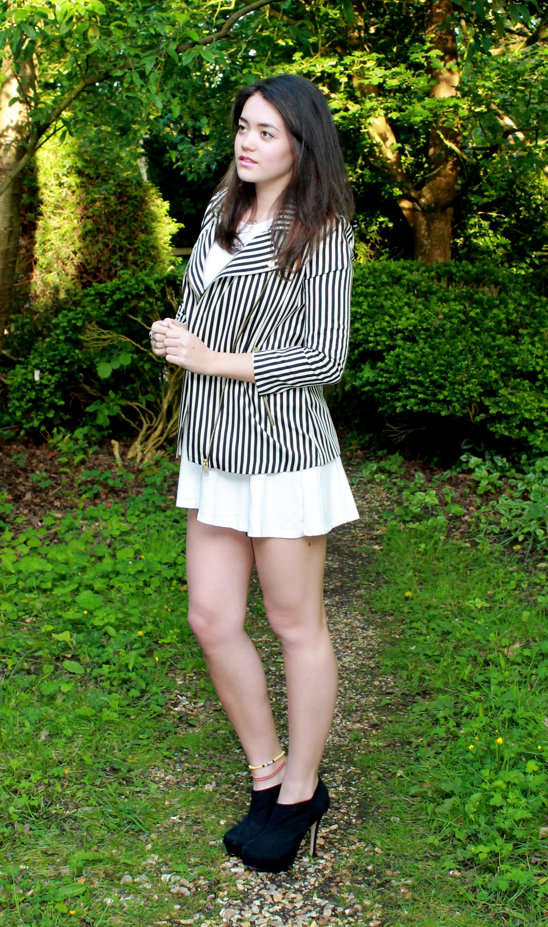 White Skater dress from Topshop, Striped jacket from Zara and heels from Miss Selfridge.