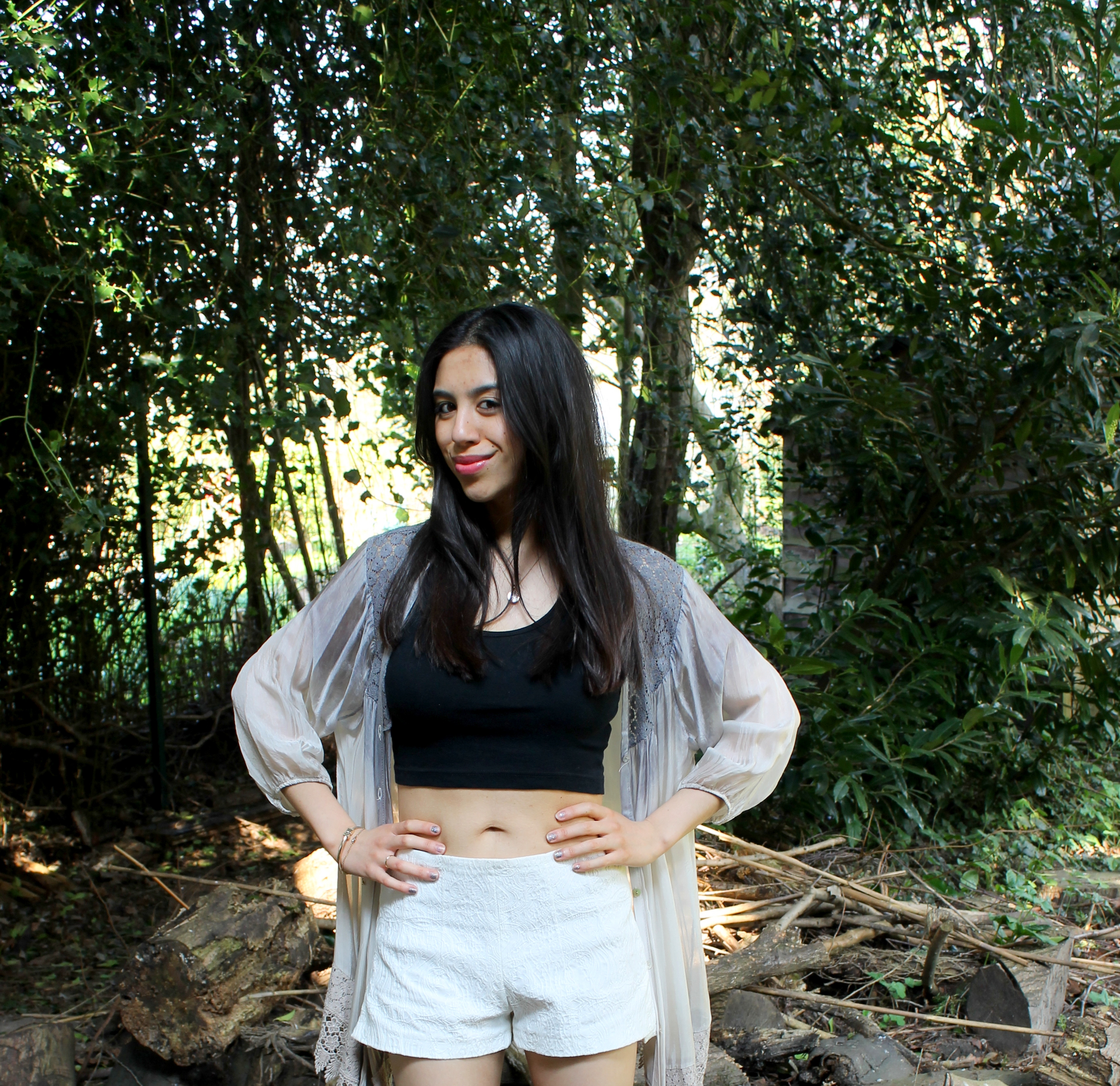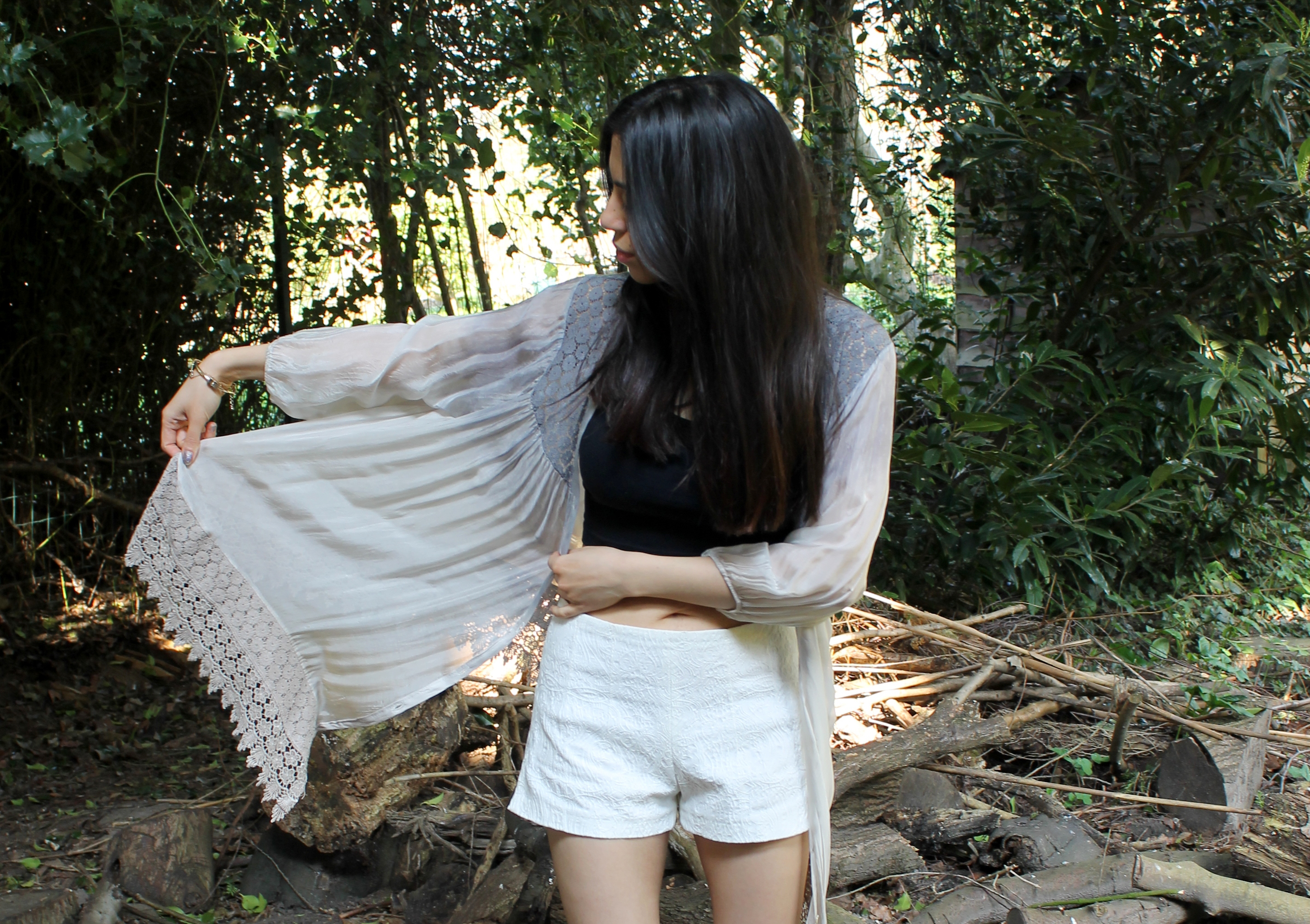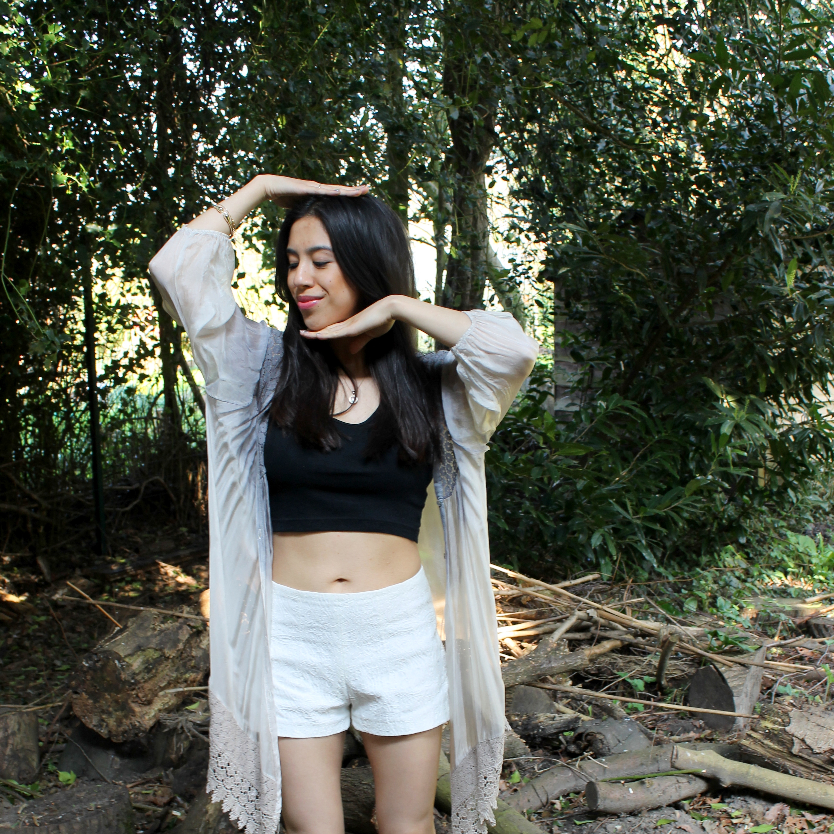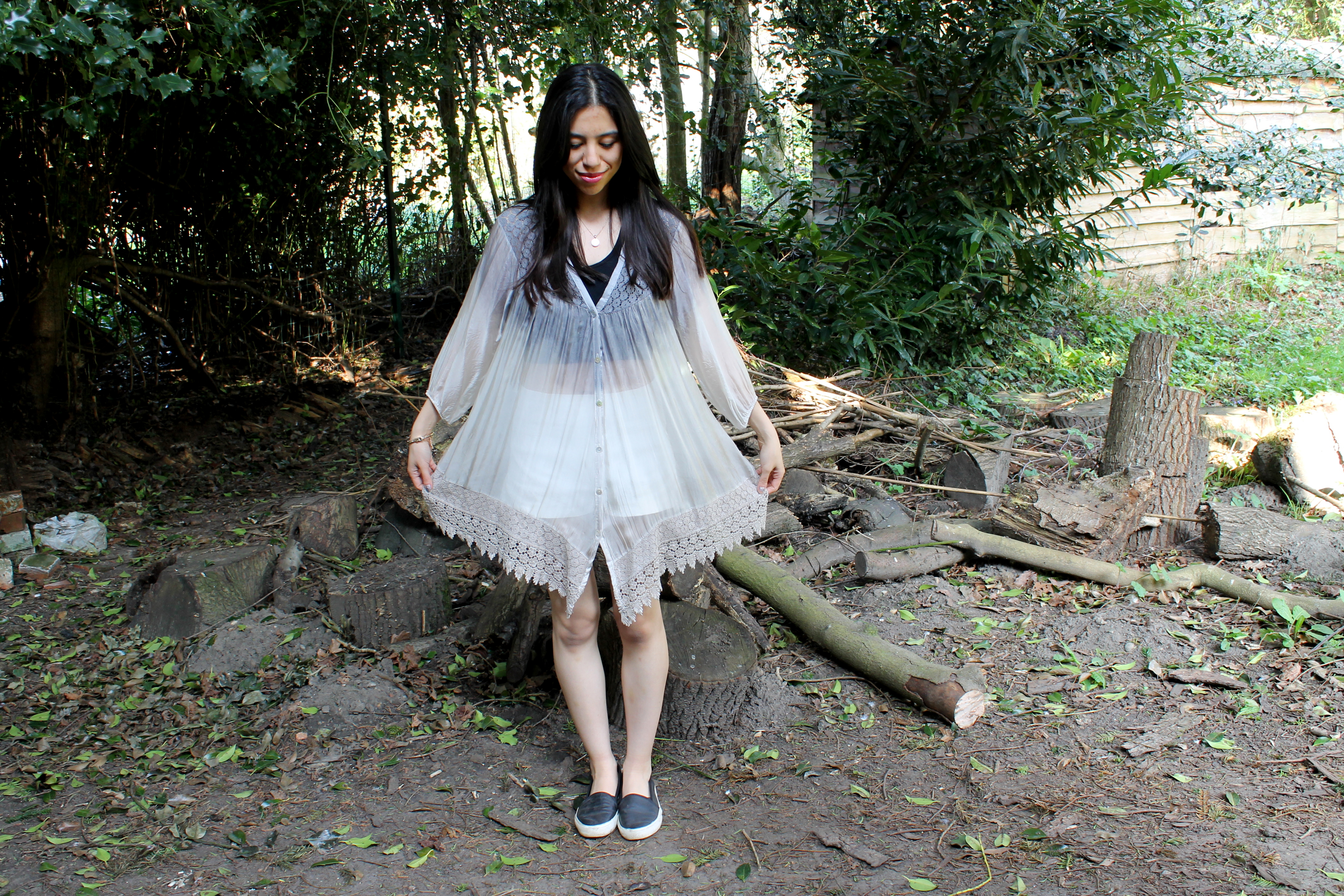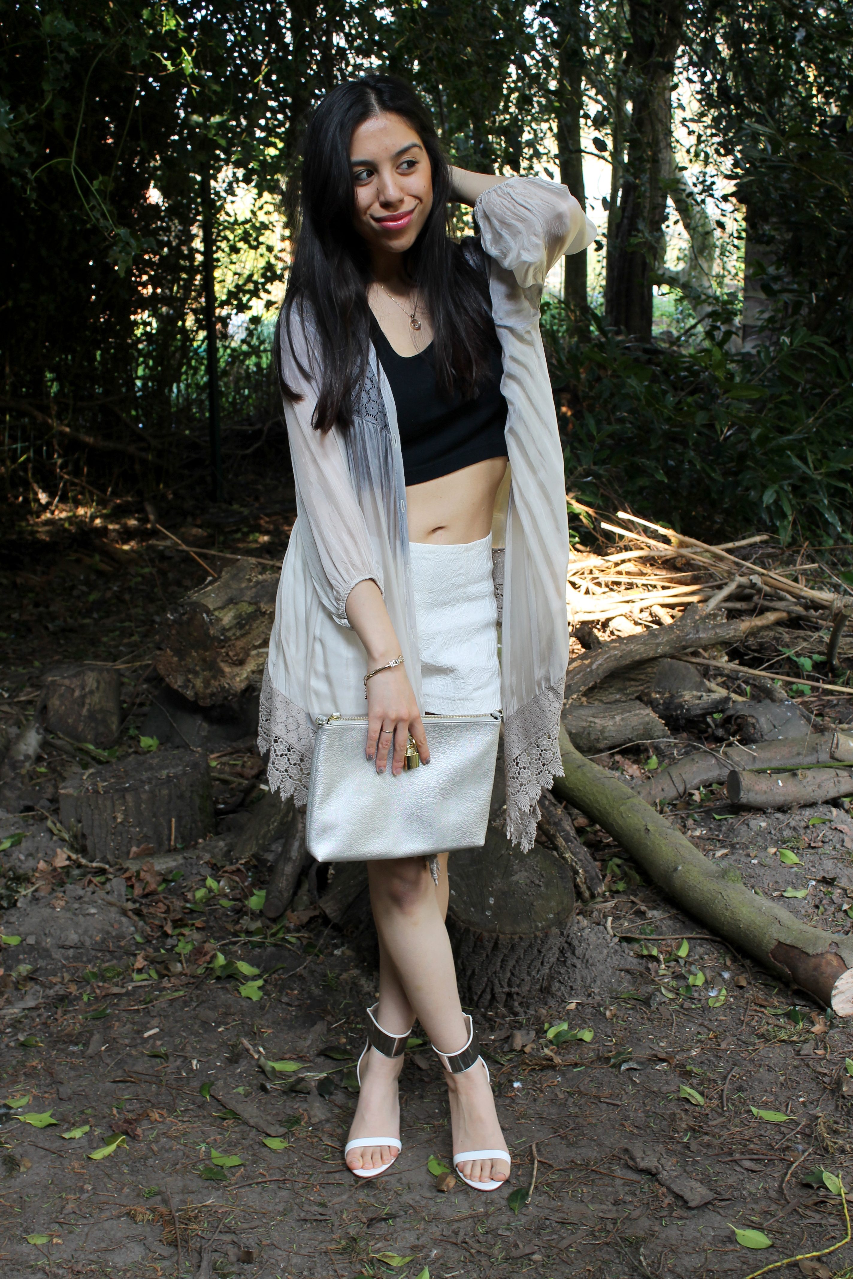 The kimono doesn’t really know where it fits in. It doesn’t serve a purpose like a bra or pair of spanx. A cardigan, jacket or rain coat would serve you better in the English weather. It’s simply aesthetically pleasing; like a necklace. A delicate material that looks great but won’t hold your boobies in place or keep you warm in the winter. This particular kimono’s job is to be the statement piece; tying the outfit together – that is really it’s sole purpose. Plus it’s very pretty to look at.