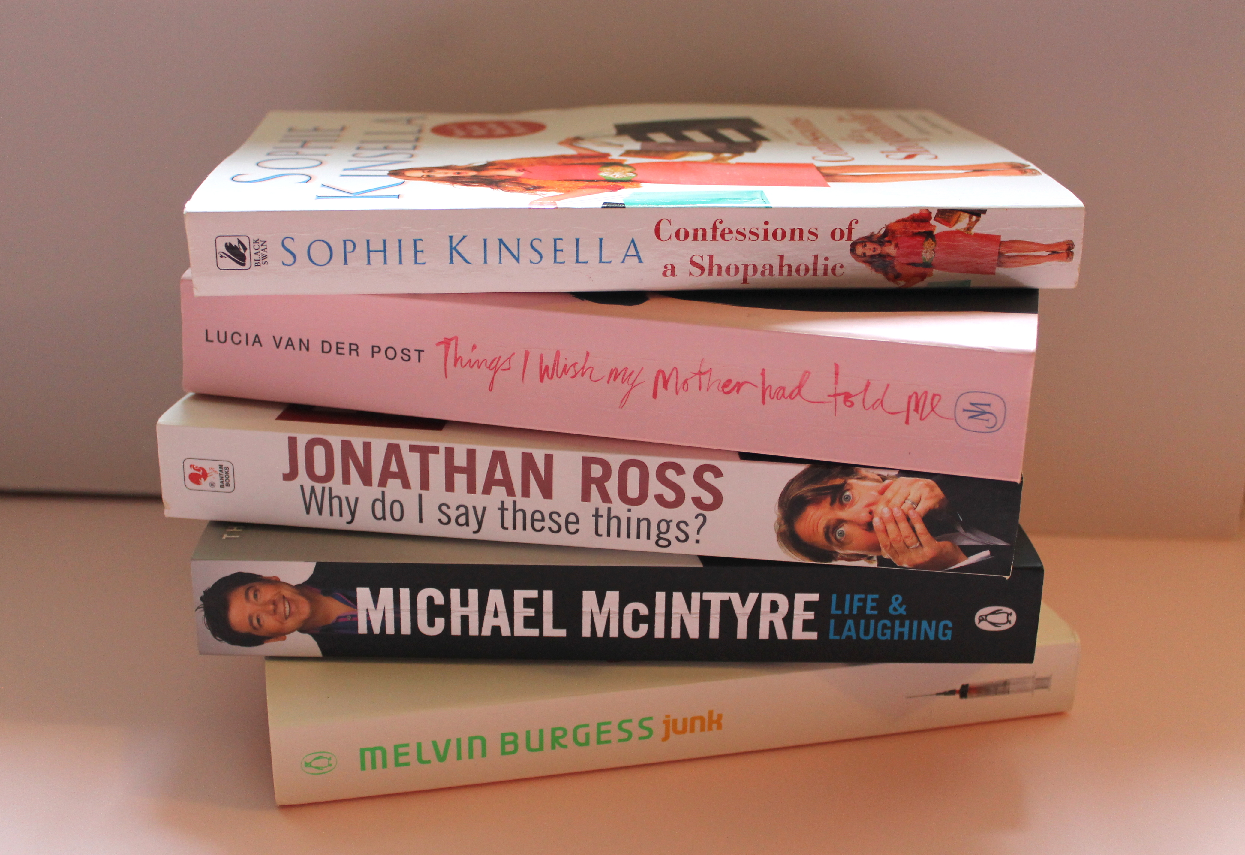 So I cannot buy clothes, but that’s just fine, as now I have more time for Mr McIntyre, Jonathan (Ross) and fellow shopaholic Rebecca Bloomwood. Next stop: the Library…