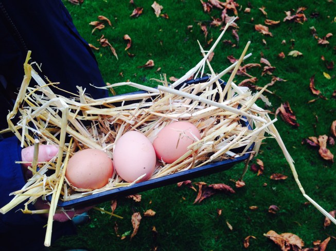 It’s all so very quaint, so fairy-tale and romantic, collecting eggs and using a wheelbarrow to collect straw for the hutches. (I just sort of stood and took photos of Maia..)
