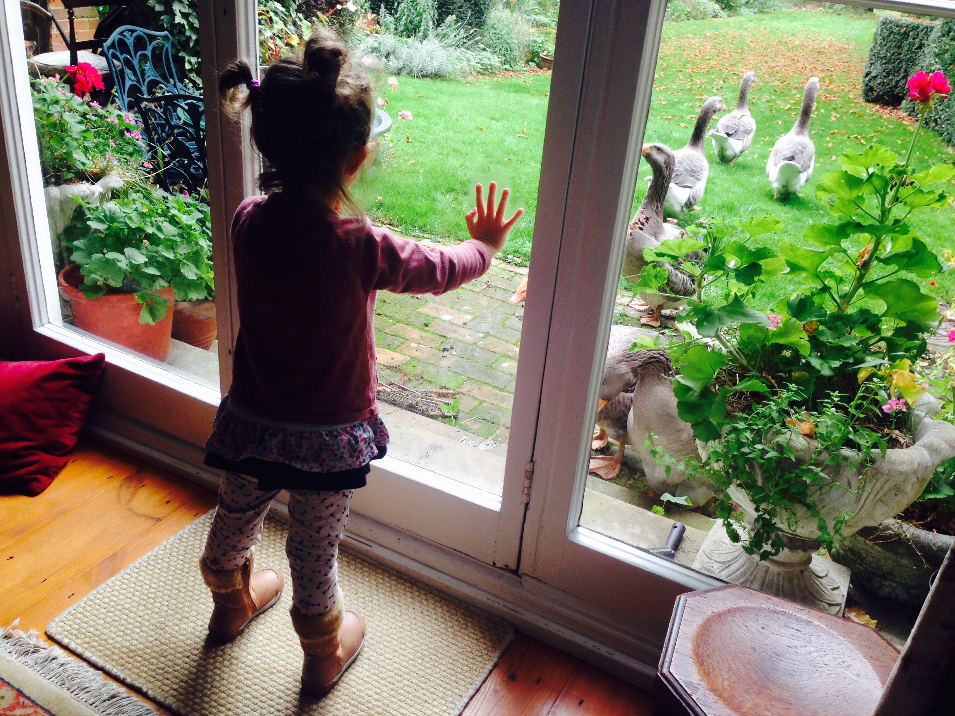 This week I took Maia to visit her Aunty Cathy. Cathy has a big family of not only humans but animals too. She lives with a dog, a cat, several chickens and gaggle of geese. It’s really quite magical and every time we go there I feel like I’m stepping into a Beatrix Potter tale.