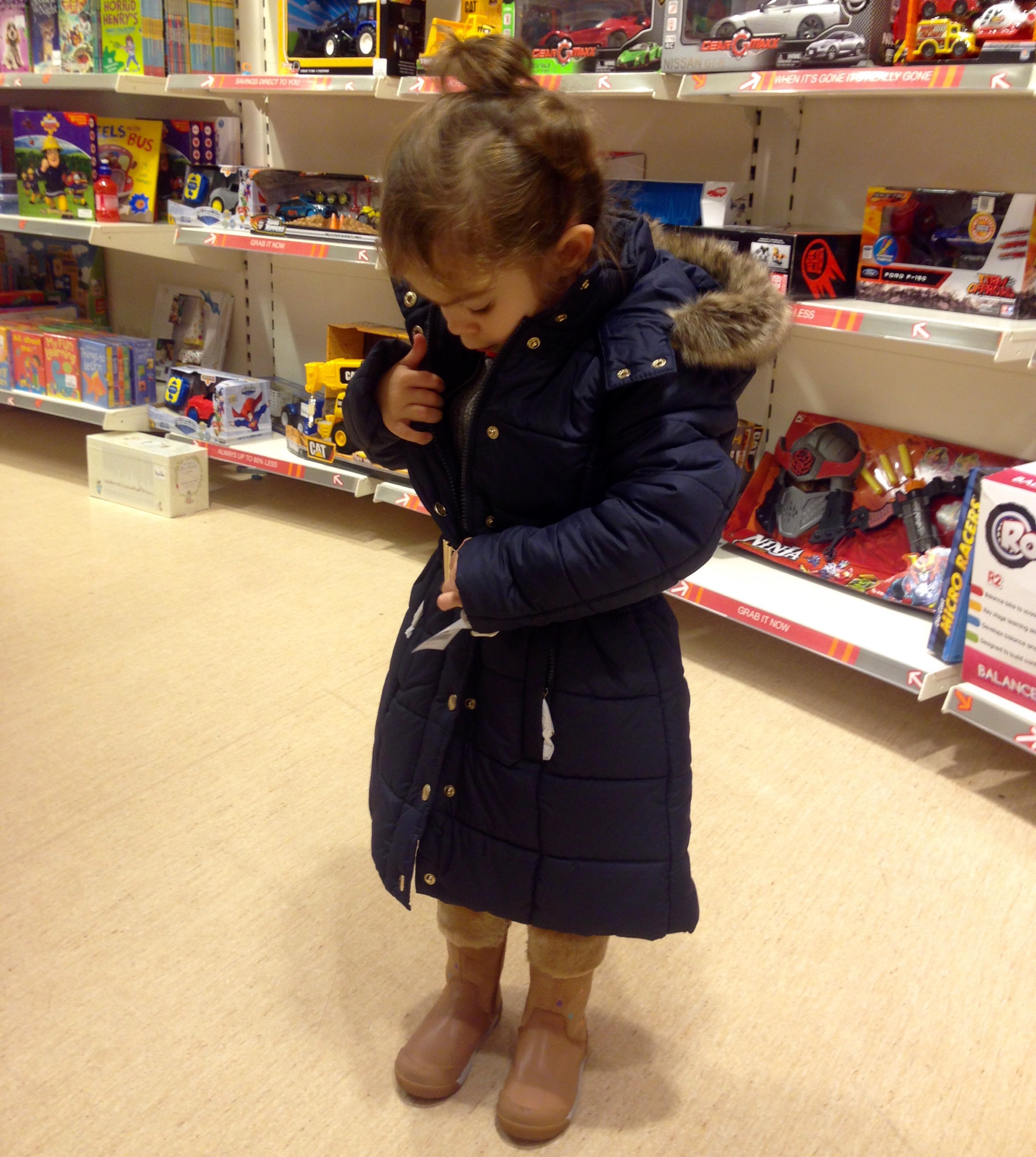 We had a very quick look in the shops and I found the exact coat I’d been searching for online for Maia. Her response? “No Mummy! I don’t want a new coat!”. I just hope this attitude continues well into her teens. I bought the coat a size too big in the hope she’ll learn to love it in the coming year.