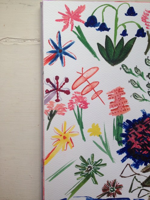 So here’s what I came up with this week. Birds, flowers, a few orange swirls and I wouldn’t even know how to describe the last one. It’s..abstract. (Thank God for the word abstract, it covers a lot of ground, if I can’t quite describe a painting I’ll just go with “oh well see it’s “abstract art”..).