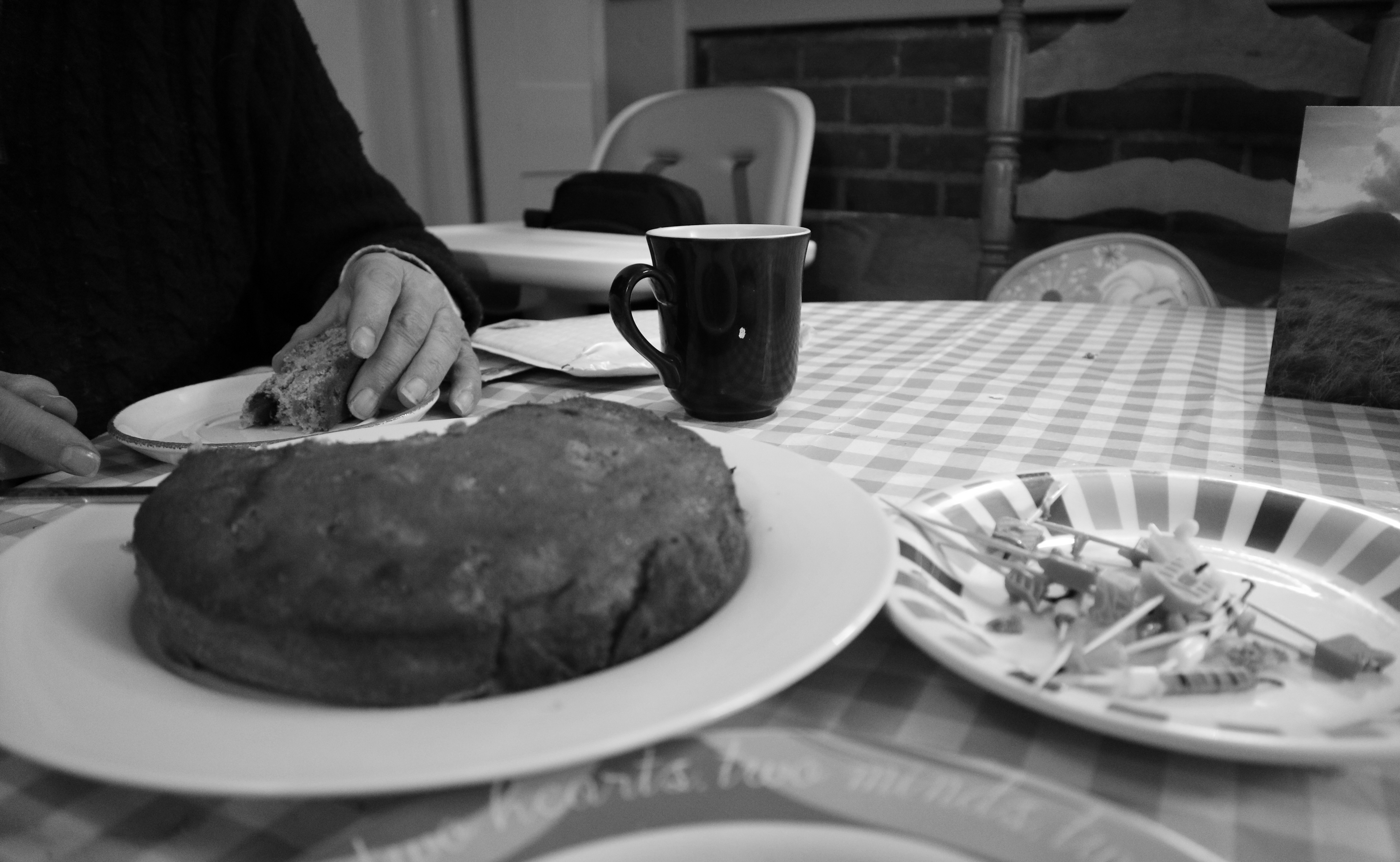 My Aunty baked the cake; a yummy fruity-combination of ginger, dates and some other flavours. It lasted about five hours, with only three of us eating it.
