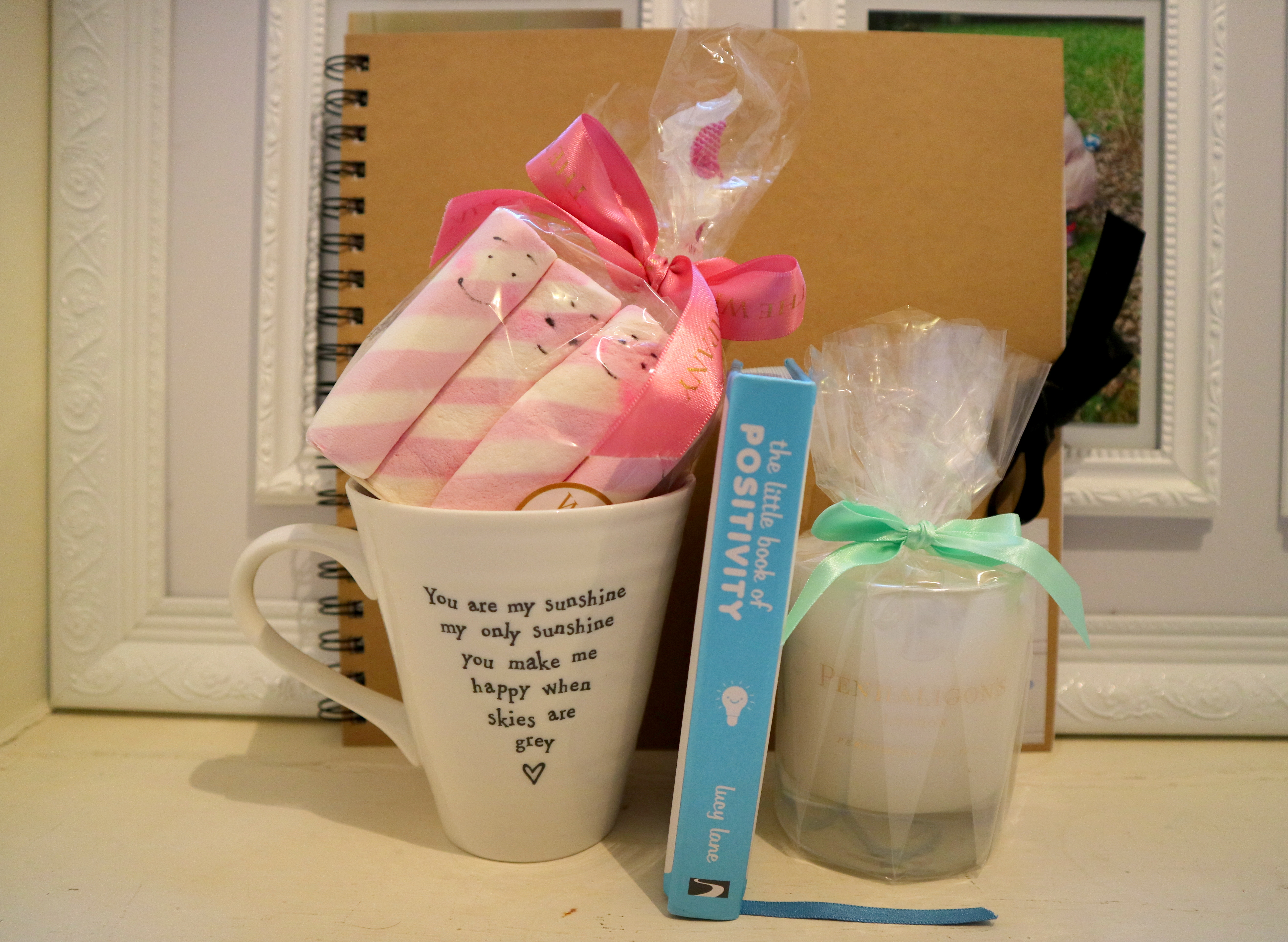 Just when I thought Christmas was just about done; Aimy, Beth and Ems come over and correct me. I was spoilt once again with some lovely little surprises, including a You are my sunshine mug – the song Maia and I always sing together, The Little Book of Positivity, marshmallows with smiley faces on, a scented candle, and a scrapbook.