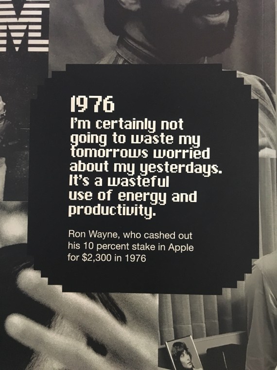 After standing in the foyer of the Steve Jobs museum for a significant few minutes stealing their Wi-fi –I had no intention of actually buying a ticket to go in..- I heard a lady say they were doing a 50% off offer on all entrance tickets. This, coupled with my urgent need to pee, led me to..well..paying to walk around a handful of rooms, to leisurely browse every Apple product ever created..and read through a selection of quotes. I will always be a sucker for quotes. The man was a legend, and I left feeling pretty inspired.