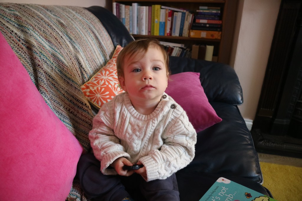 Often he will ignore the T.V and opt for a book (albeit occasionally upside down), which makes my heart sing. Other times he’ll be transfixed by all the screen activity. (As above).