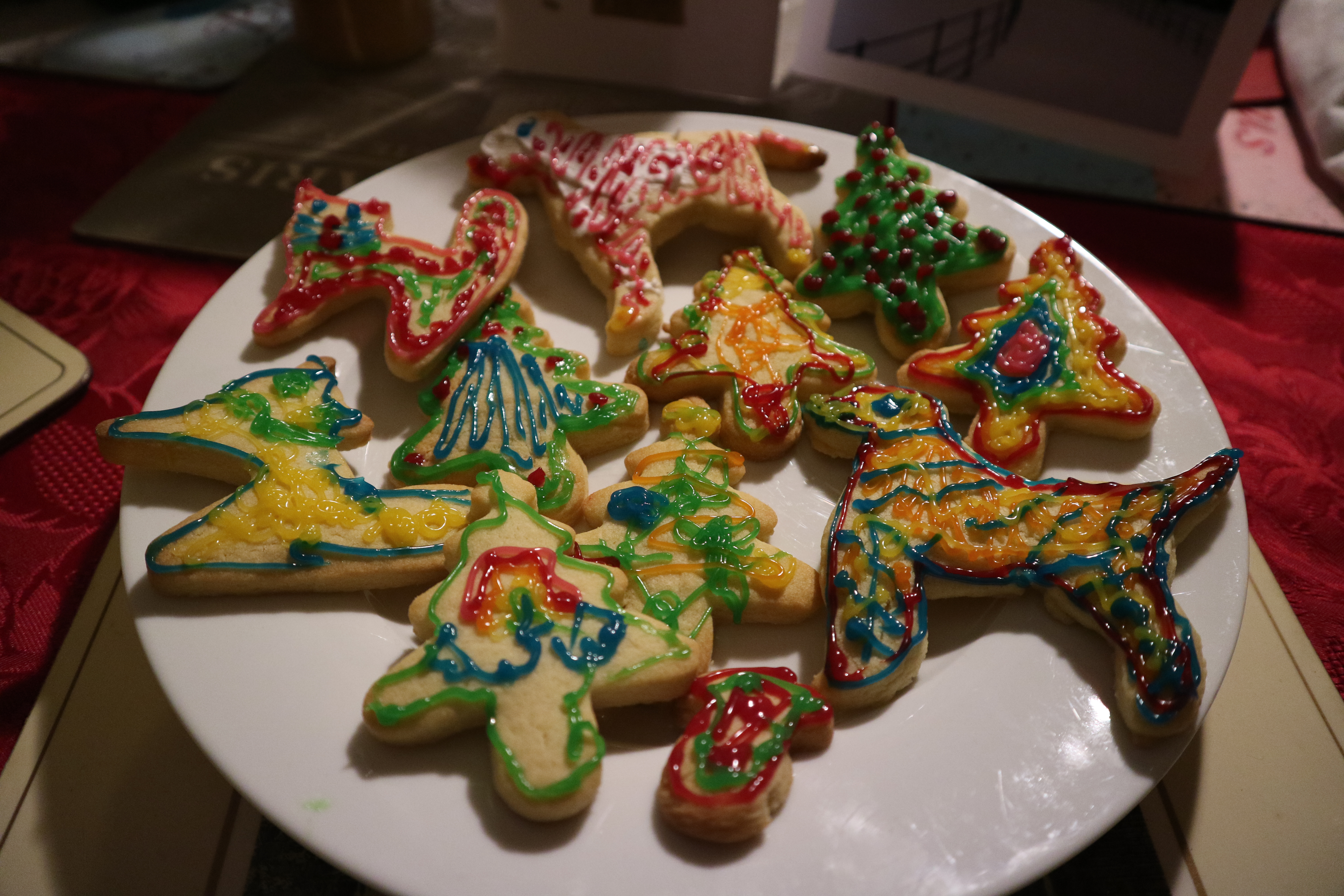 My gorgeous friend Cathy made us biscuits and put together a little icing kit. Maia decorated these with her Grandma.