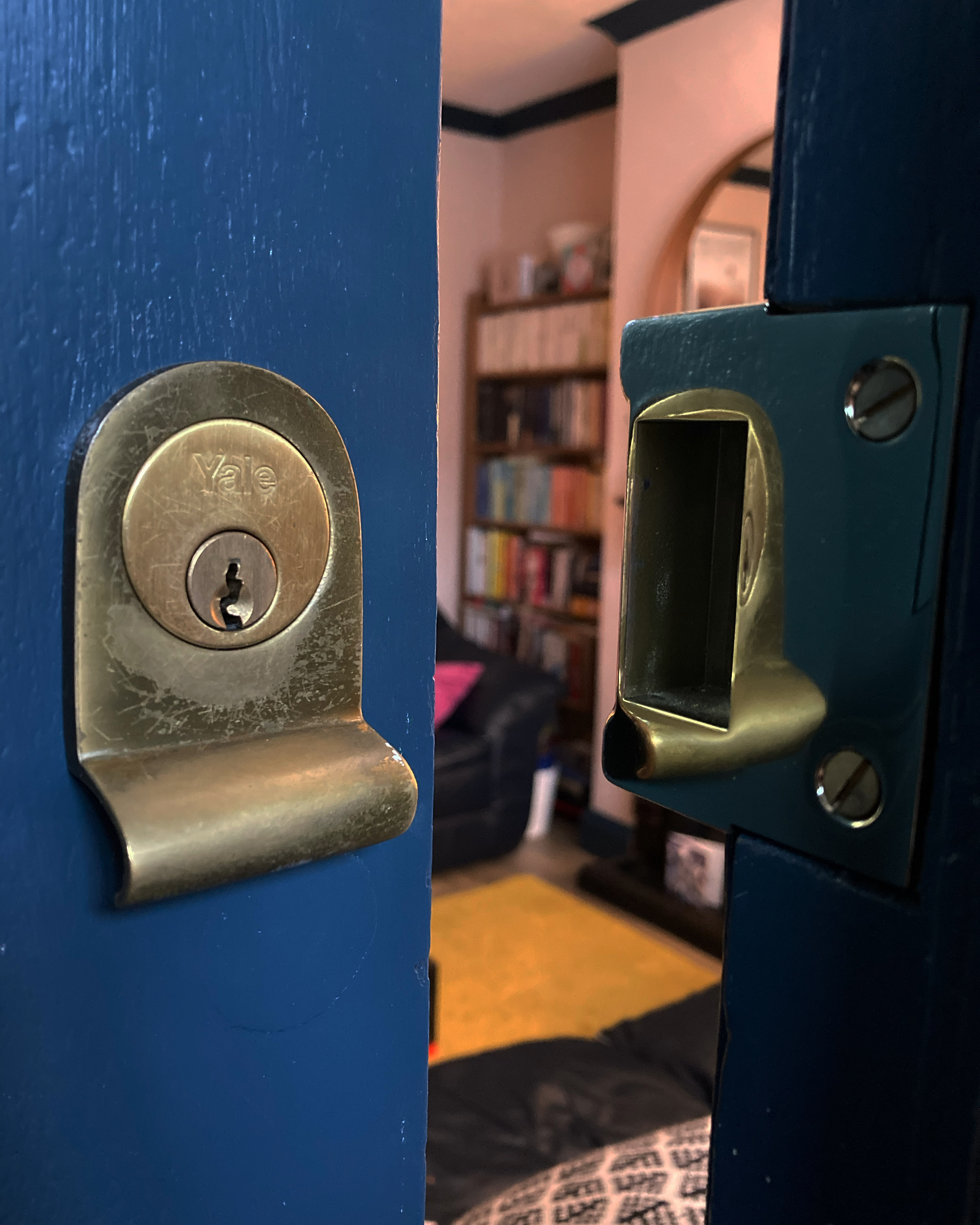 Water in one hand, I vaguely recall putting my left hand around the edge of the door to unnecessarily guide it shut behind me, as I marched out. (Who does this?!) Whether I’d already begun to slam it or whether this was my rushed, I-can’t-stop-moving way of closing it, I don’t know. It didn’t need my hand for guidance. Our porch door is fast and furious.
